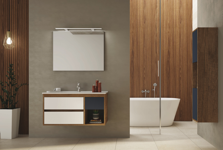 Con vano a giorno in larice brown con ante in fenix blu fes